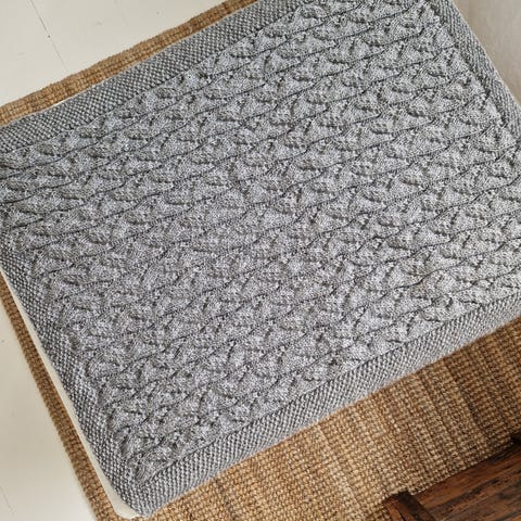 Størrelse va 60x78 cm. Kan sendes mot at kjøper betaler frakt. Farge offwhite. Strikket i Drops Merino Extra Fine