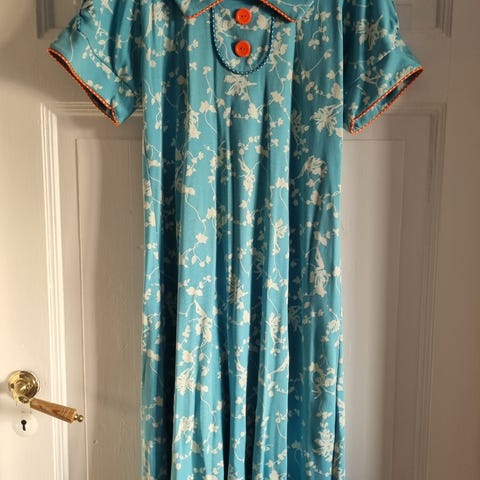 Utrolig fin kjole fra Margot Mikkelsen i bomull. God stretch. Men opplever den som en liten L, eventuell romslig M. Nydelige farger. Kan sendes mot porto.