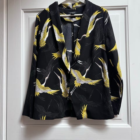 Sort og hvit rutete dobbeltspent blazer fra Lindex i str 36. Den er pent brukt. Superkul nå til høsten!
