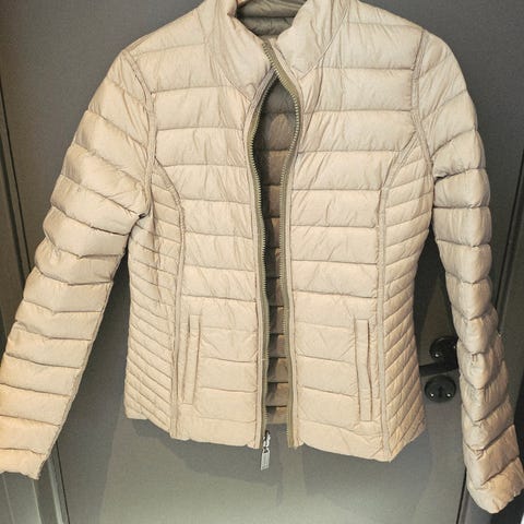 Pent brukt, vendbar, nydelig myk lett dunjakke. Glidelås på lommer.