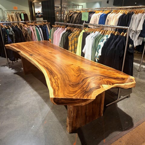 Stort bord, butikkinnredning, hagebord, spisebord, plantebord etc.