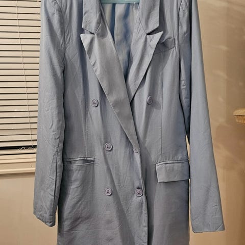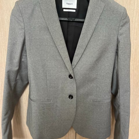Blazer / kåpe / dressjakke i ullignende stoff (lappen er fjernet, så er usikker) med fint fôr inni, str 34