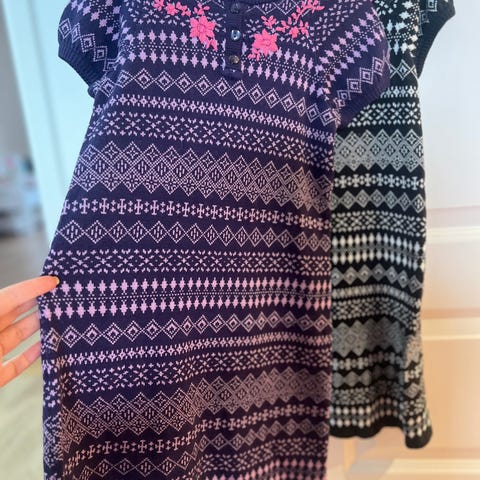 Nydelige kjoler, pen mønster, litt varmere slik at de kan brukes på høsten (ble også brukt om vinteren med en jakke). Dattera likte dem veldig godt. Str 122/128. Selges 100 kr per stykk eller 160 kr for begge to. Kan sendes mot porto. Se gjerne mine andre annonser. Det er mye til salgs. Inntektene går til Ukraina ❤️🇺🇦❤️