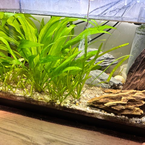 Akvarium med mye utstyr