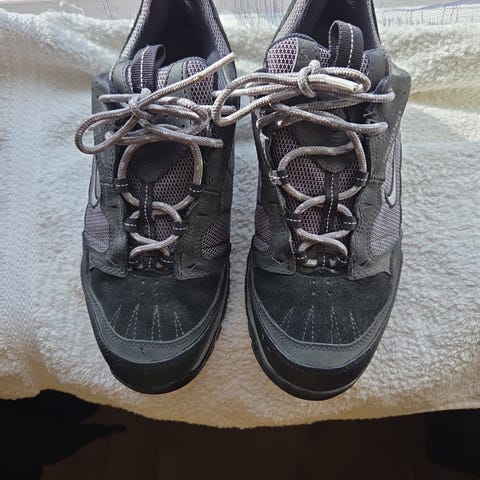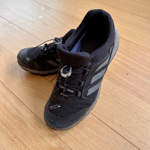 Behagelige Goretex sko til tur. Sålen på skoene er like hel, de er slitt på tuppen av skoen (se bilde), ellers like fine.