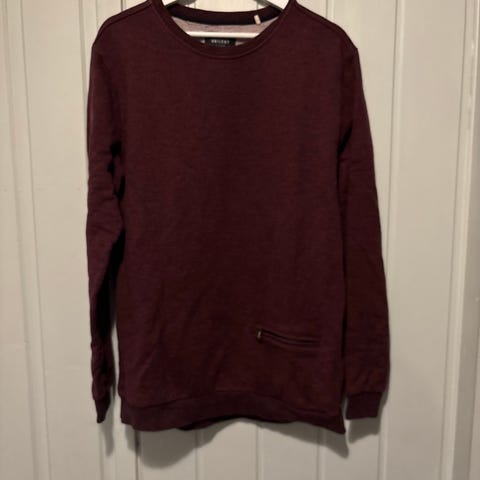 Råkul langermet genser i dyp burgunder str. L. Rund hals, Kule sømmer, råkant nederst. 55% bomull. Som ny. Kan sendes. Kjøper betaler frakt.