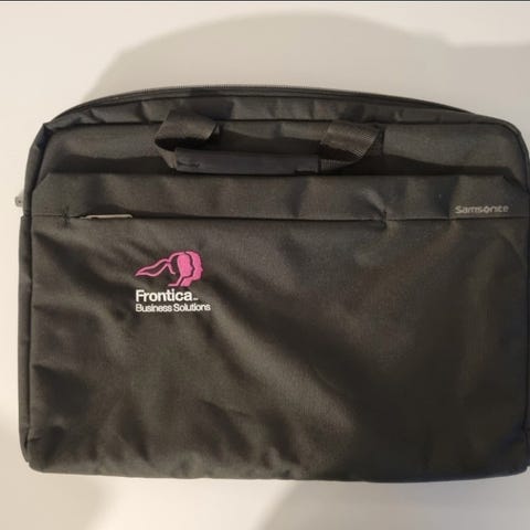 En praktisk og slitesterk pcveske i nylon, rom foran og feste til kabin-koffert.