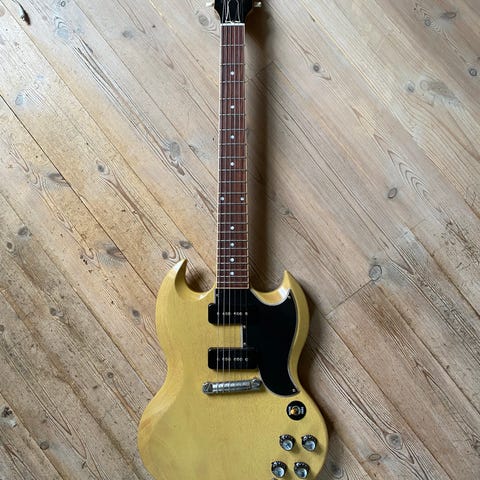 Helt strøken, 100% original og sjelden samler. Bare 300stk produsert fra 79 til 80. Minimalt med spill slitasje. Tim Shaw Dirty fingers T-tops låter heftig! Coiltap gir flere variasjons muligheter.