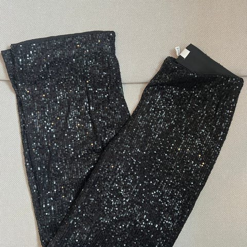 Model Ranee easy kick. Selger også silkebluse som passer til. Sølv er litt mer fremtredende på bilde enn i virkeligheten . Der er det mer svart med sølv. Deilig bukse med strikk i livet .