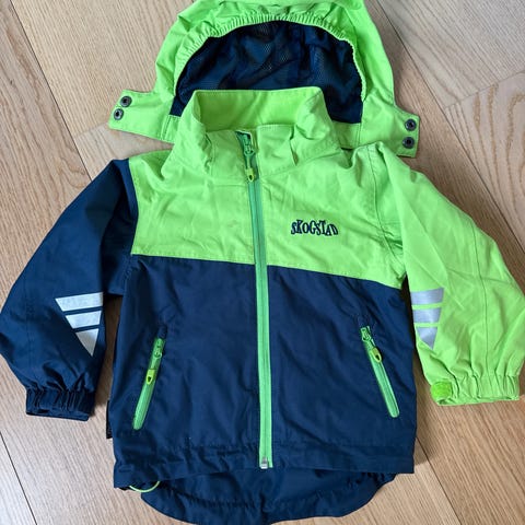 Jakken er litt stor i størrelsen og kan fint brukes som en 116 str.