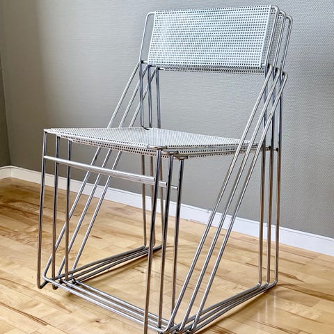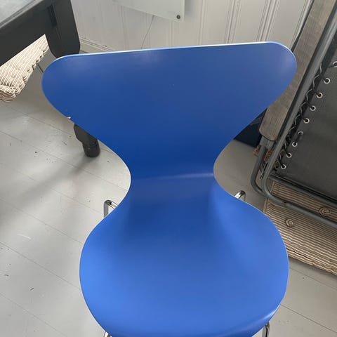 Sort med sort understell! Monokrom type. Denne modellen er pulverlakkert og kan derfor tåle å stå både inne og ute. Denne stolen har bare stått inne.