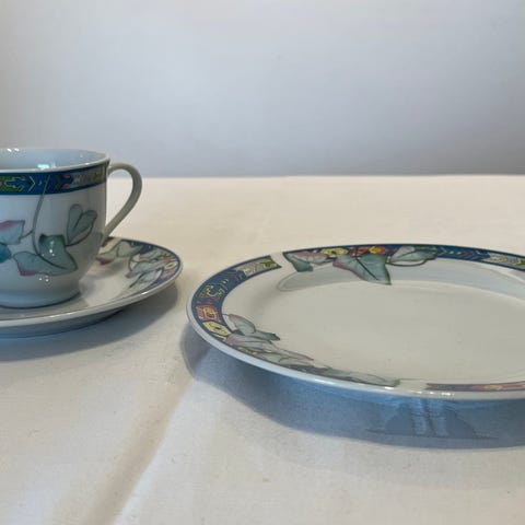 2 stykker, i veldig god stand. 200 kr per sett ( kopp med asjett). Kan pakke veldig godt og sende med post nord for 69 kr extra porto eller fix ferdig.
