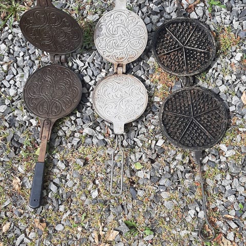 Flotte vaffel/krumkakejern til bål/bålpanne-eldre-men god stand-bud