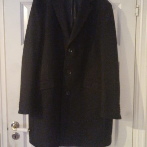 Ubrukt cashmere frakk selges for kr 3500. Frakken ble sydd på bestilling og den ble sydd av fineste(!) cashmere kvalitet. Dette er ingen masseproduksjon. Den ble sydd til en eldre mann som selv hadde arbeidet i bransjen i 70 år, og som visste alt om kvalitet. En liten knapp under kragen (vind, sludd, sne). En liten innvendig lomme til kort eller kontanter. To utvendige lommer. Splitt bak. Lengde ca 111 cm + 6 cm krage høyde. Skulder bredde ca 50 cm. Ermelengde 63 cm målt på utsiden. Ingen flekker, skader eller nupper. Min far var ca 1.80 høy. Jeg vet ikke str på frakken , da den ble sydd etter mål. Frakken er helsvart. Beklager vedlagte bilder. De er elendige, men jeg får dessverre ikke gjort noe med det. Ved interesse vennligst ta kontakt. Kun seriøse henvendelser
