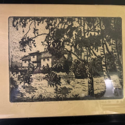 Trykk (?) av Eyolf Soot datert 1897 med Bjørnstjerne Bjørnson og kone som motiv.