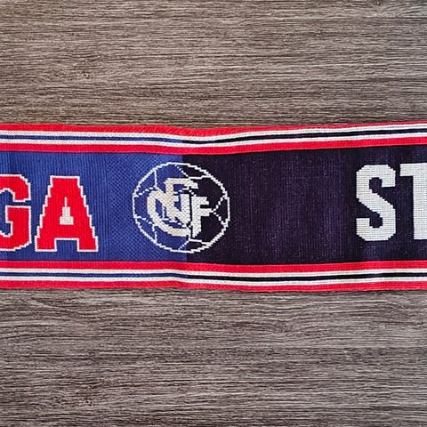 Vålerenga Barcelona jubileumsskjærf. Kan hentes på adressen eventuelt møtes i Oslo sentrum