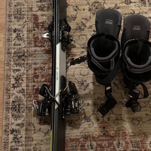 HEAD telemarkski (156 cm) og Scarpa sko (str 38). Godt brukt, noe riper i skiene. Skoene har ingen synlige bruksmerker.