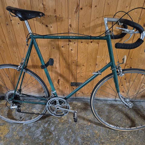 En Motobecane som har stått i en keller sikkert 30 år. I stort sett ikke syklet på.