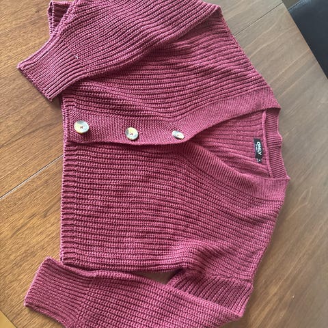søkeord: cardigan kort fiolett ungdom overjakke dame klær høst vinter vår sommer topp bluse overdel antrekk fest selskap penklær