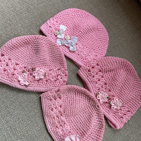2 vakre hjemmestrikka barneluer