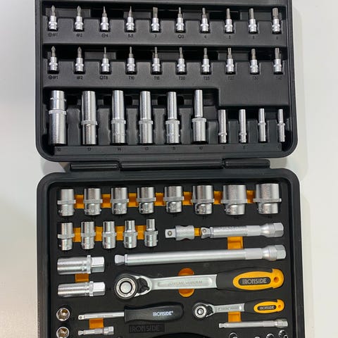Innhold: 1 stk Skrallehåndtak 18 stk Piper (10, 11, 12, 13, 14, 15, 16, 17, 18, 19, 20, 21, 22, 23, 24, 27, 30 og 32 mm) 2 stk Forlengere med vinklingsbart hode (125 og 250 mm) 1 stk T-håndtaksadapter 2 stk Tennpluggpiper (16 og 21 mm)