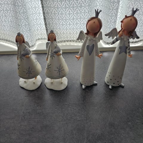 Sammenlegg bare engler. Høyde ca 12 cm. Oppheng / løkke for å henge. Lett å bruke. Det er et godt magnetfeste som holder formen på engelen. Lett å lagre. Fint laget med «gulldekor» i vinger og på kanter. Fine i vinduet. Til advent jul og «mørke årstid». Kanskje « året rundt» fine på greiner eller tre kanskje ..Fantasien avgjør… . Pris- for tre samlet kr 150,- blir ikke solgt for under oppgitt pris. Fastpris.