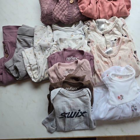 Klespakke jente str 56 (sett, ull, kjole, sokker, overdel, underdel)