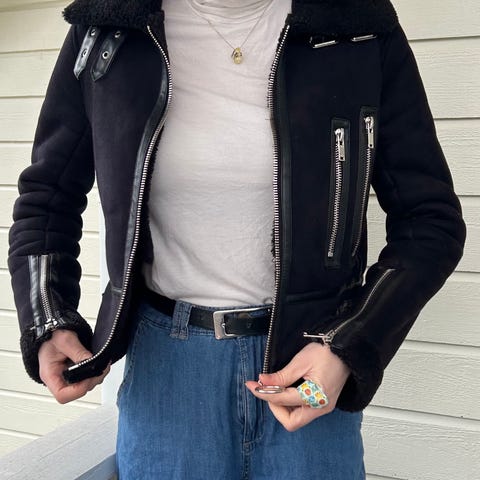 Selger denne superkule skinnjakken fra Zara i Str 36/S.