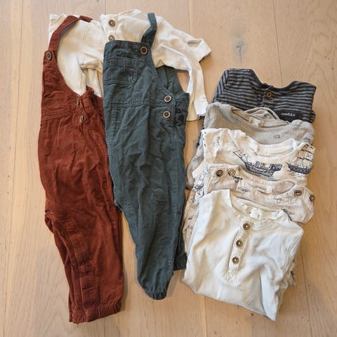 Selger 2 genser, 2 body, bukse, heldress, 4 par sokker. Alt er pent brukt. Perfekt i barnehage.