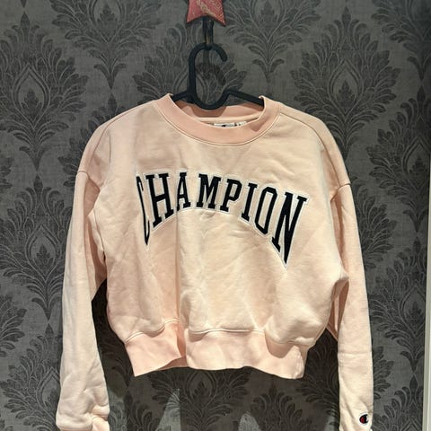 Selger en kort hvit, rød og blå genser fra Champion, Størrelse XS.
