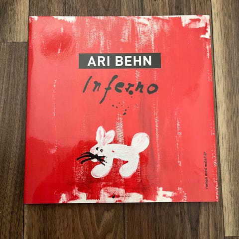 Behn, Ari: Inferno - roman med malerier. Forfatteren Ari Behn er en velkjent skikkelse for mange, både som forfatter og som tidligere gift med prinsesse Märtha Louise. I denne boken, som betegnes som en roman med malerier, skildrer han skiftende sinnsstemninger, bevegelser og kontraster i sjelslivet: blyg og skamløs, noksagt og kraftfull, taus og pågående. 2018. Som ny.