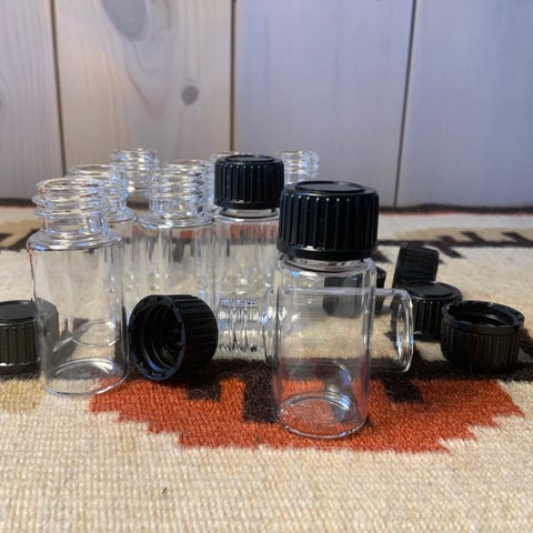 Pipetteflasker 12 stykker i eske. Type 2, med måling på pipetten. 30ml. Brune flasker. Hvit topp. Se bilder.