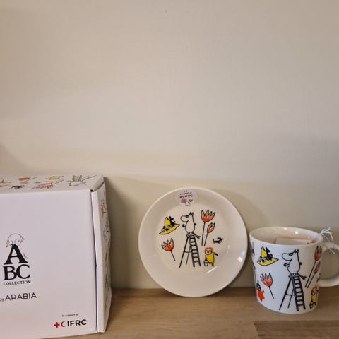 Selger en helt ny mummikopp med etikett og eske. Mummidagen 2024, Vår.