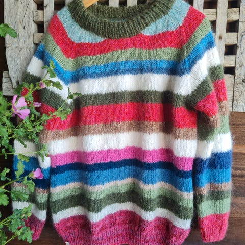 Hjemmestrikket genser i fine sommerlige farger 💖