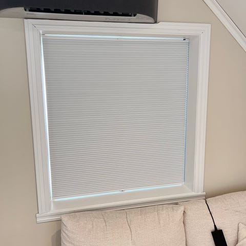 1 stk. 60 x 170 cm. Hvit lysdempende plissegardin med opp/ned funksjon selges for 200,-