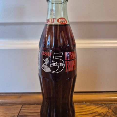 Coca-Cola glassflaske utgitt i forbindelse med 25 års jubileet til Ohio State National Football Champions. Uåpnet. Kan sendes med postnord for 69,-.