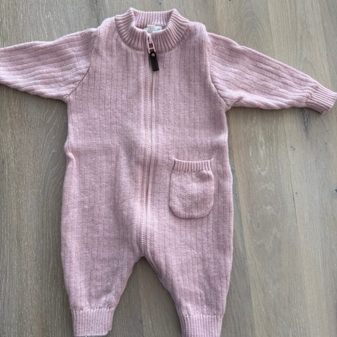 Myk merinoull heldress fra C-mini i dus rosa. Med knapper. Kan brettes i armer og bein. Str.50/56.