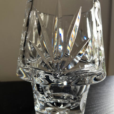 Meget pen. Fargen kommer ikke så godt frem på bilde. Kan brukes både som vase og som potte.,Vasen er i glass. Se gjerne mine andre annonser. Må hentes