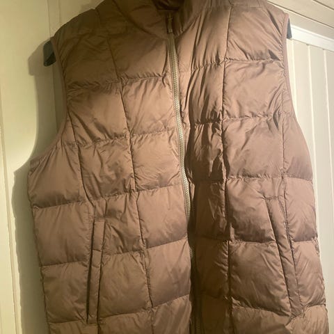Pent brukt dunvest fra amerikansk firma(men laget i Kina)med en blanding av fjær og dun i fyllet selges. Varm nok til kjølige dager ,men likevel luftig nok til å brukes om våren.Passer til en mann på 190 cm.Leveres rengjort.Selges fordi jeg trenger plass i kleskapet.