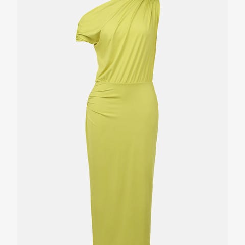 Elegant rød kjole i størrelse L for dame. Designet med en kroppsnær passform, ideell for formelle anledninger. Stoffet er glatt og komfortabelt, hvilket gir en stilfull silhuett.
