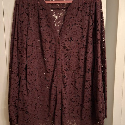 Ny blazer for dame fra VRS, kjøpt i Danmark, str.S i nydelig burgunder farge med blomstrete mønster i sølv