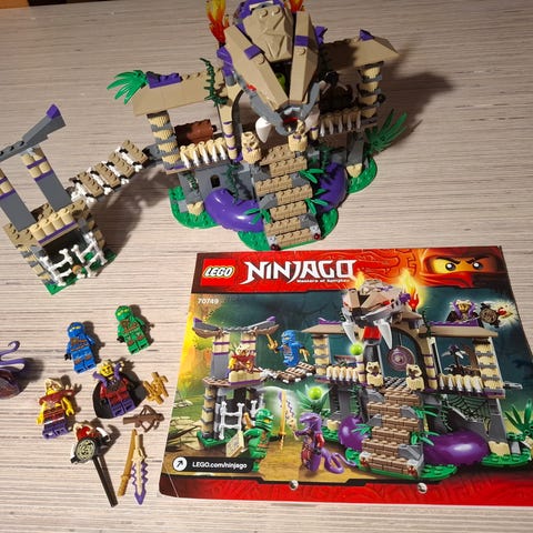 Sønnen min selger unna Ninjago samlingen sin. Settet er inntakt, men mangler ett flagg og en erstatningsbit er brukt til "tilbehøret" til hovedfiguren (som vist på bilde).