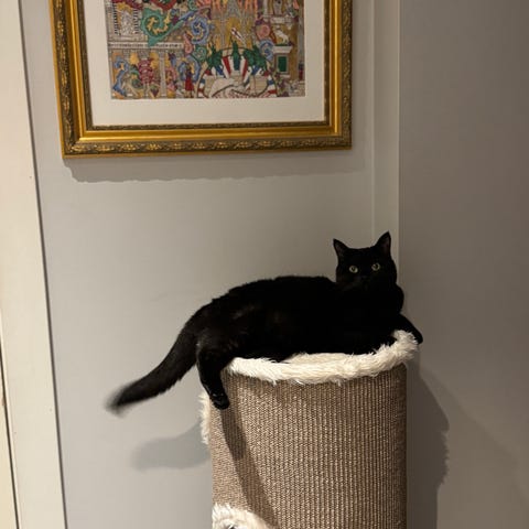 Helt ny kloreplate til katt. Formet som en katt, og penere å ha på veggen enn vanlige kloremøbler. Svensk design av Nina Ottoson.