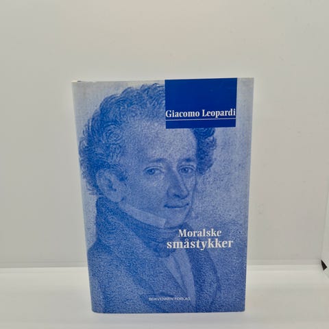 Giacomo Leopardi: Moralske lysestaker. Bokvennen forlag 1998. Giacomo Leopardi (1798-1837) er kalt smertens og pessimismens dikter. Boken er innbundet og har omslag, som ny. Kan sende.