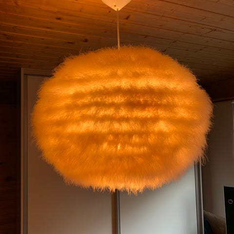 Ny, feather taklampe i fjær. Ca 30cm i dia. 500,- + evt porto.