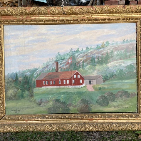 Kunstnerens navn er: Edvard Otto Rossing Skari (1839-1903). Yttermål ramme: 17 x 38 cm. Kan sendes.