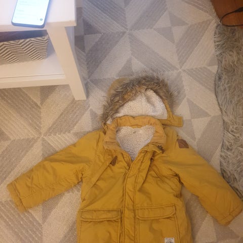 Grønn, foret vinterjakke størrelse 110. I fin stand.