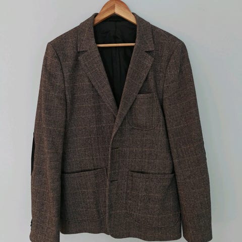 * solgt * Mørk blå blazer med brune lapper på albuene * solgt *