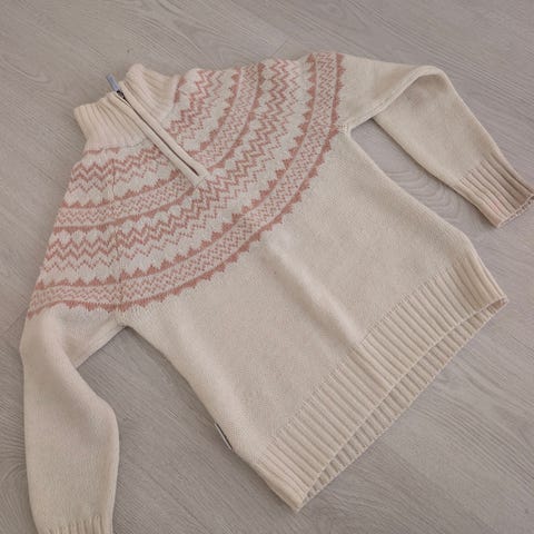 Selger en lite brukt hjemmestrikket cardigan. Brukt i dåp og på bilder.