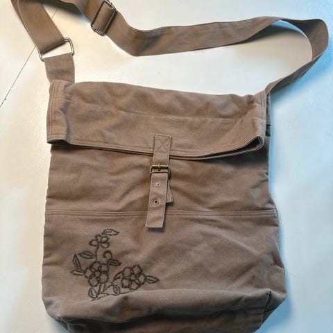 Canvas og reim i fin stand. Låsen er ødelagt.